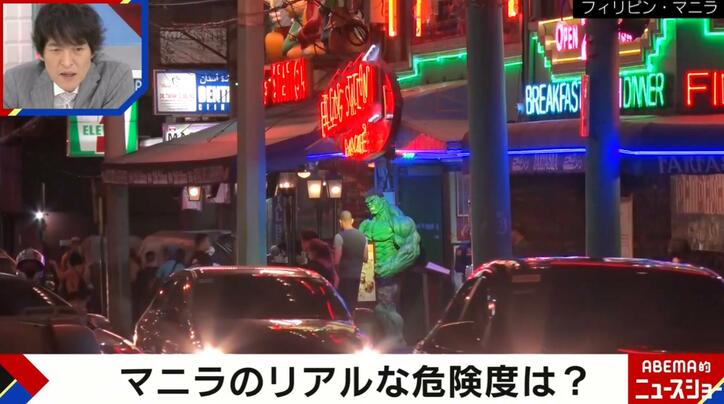【写真・画像】治安最悪…?フィリピンのリアルな危険度「少数の人が悪い事を…」「日本の犯罪の舞台になっているだけ」 在住者が語る危険エリア「マラテは日本でいう歌舞伎町」 2枚目 ABEMA的ニュースショー千原ジュニア,田中萌 2025/08/28 07:00 画像2枚目/4枚 フィリピン・マニラ 記事を読む 【映像】ABEMAでみる ▼スクロールで次の画像をみる▼ 【画像】日本でいう歌舞伎町?マラテの様子 【映像】シンガポールのムチ打ち刑の様子(実際の映像) 元暴力団幹部が語るフィリピン闇社会「日本で殺すよりはバレない」 Twitter