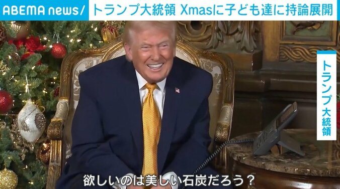 【写真・画像】「悪いサンタをアメリカに侵入させない」 トランプ大統領、子どもとの会話で不法移民への持論を展開 2枚目 わたしとニュース 2025/12/27 18:00 画像2枚目/4枚 "石炭はやだ"という子どもへの大統領の返答 記事を読む 【映像】ABEMAでみる ▼スクロールで次の画像をみる▼ 【画像】"石炭はやだ"という子どもへの大統領の返答 【映像】「クマが飼育員を襲撃」カメラが捉えた“緊迫の救出劇” “サンタ”が街中を疾走!? 「サンタラン」に4500人が参加 Twitter