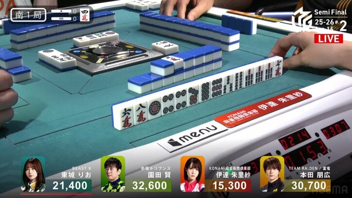 【写真・画像】こんなの見たことがない!?「捨て牌ゼロリーチ」と「裸単騎」超常現象とも言える激レア対決に大盛り上がり/麻雀・Mリーグ 2枚目 Mリーグ 2026/04/15 15:00 画像2枚目/2枚 麻雀界初?「捨て牌ゼロリーチ」と「裸単騎」の対決 記事を読む 【映像】ABEMAでみる ▼スクロールで次の画像をみる▼ 【画像】麻雀界初?「捨て牌ゼロリーチ」と「裸単騎」の対決 【映像】輝く役満ボディ!岡田紗佳の抜群スタイル 【画像】ウエストもキュッ!高宮のスタイルが映えるユニフォーム姿 Mリーグ 配信情報まとめ ABEMAでみる Amazon人気商品 フェイスタオル ホテル仕様 ふかふか タオル研究所 Amazon 奇跡の歯ブラシ 3本セット なぞるだけで汚れがおちる Amazon