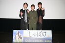 The main cast of three appeared on stage: Daiki Yamashita, who plays Ichitarō; Kōji Okino, who plays Nikichi; and Taku Yashiro, who plays Sasuke.