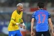 【写真】ブラジル戦後、マルティネッリの頭を撫でる冨安